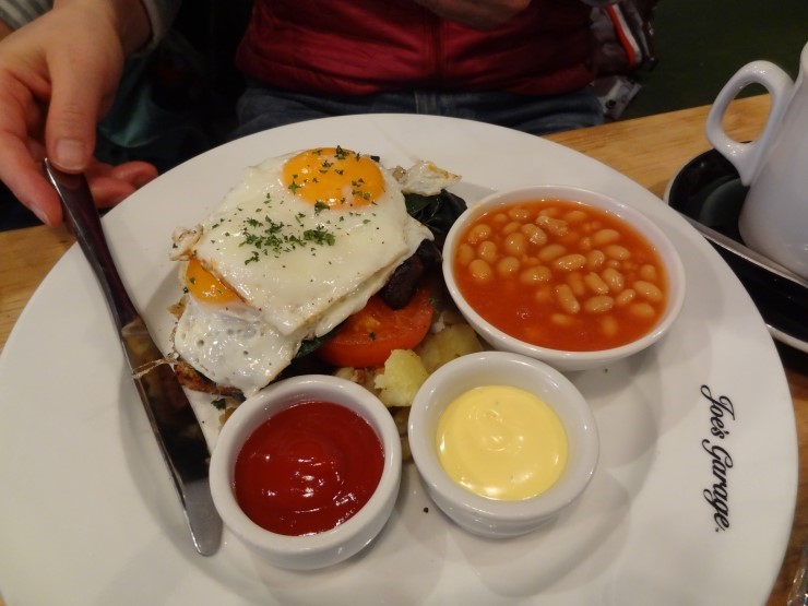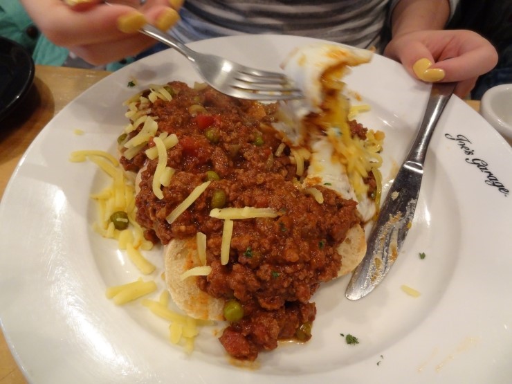 햄버거(NZ$10) 크기가 정말 얼굴만하답니다 (모델:아들) 그리고 뉴질랜드식 아침식사(NZ$15)입니다