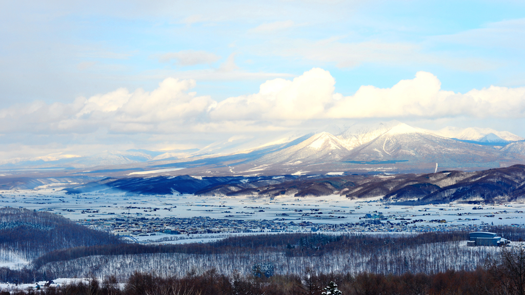 3월11일 후라노 프린스 호텔에서 아침 8시 40분 경에 바라 본 북해도 도카치다케 연봉의 모습과 비에이의 아름다운 모습을 몇 컷 올려드립니다.