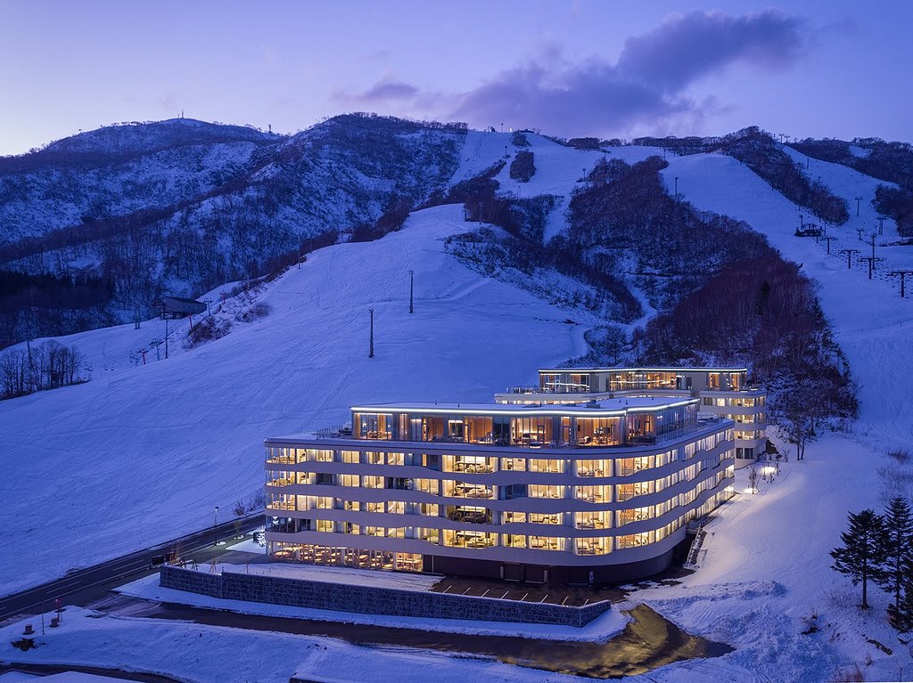 바로 눈 앞에 슬로프가, 요테이산 전망을 한 눈에 담을 수 있는 객실과  유니크 하면서도 자연과의 조화를 아름다운 곳입니다